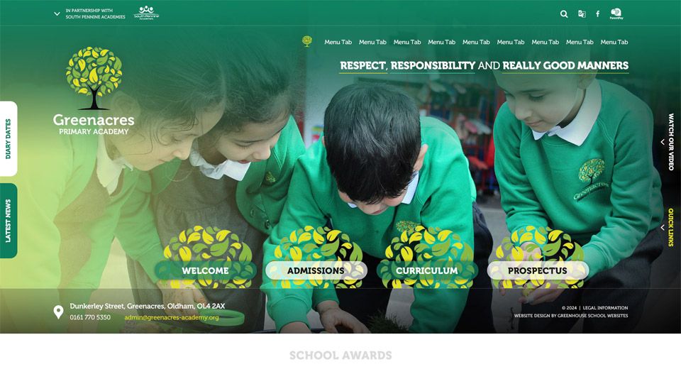 You can keep your fun ‘on-brand’ with touches such as the leaves and tree images following throughout the website as at Greenacres Primary School.